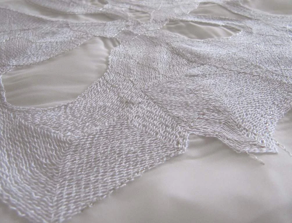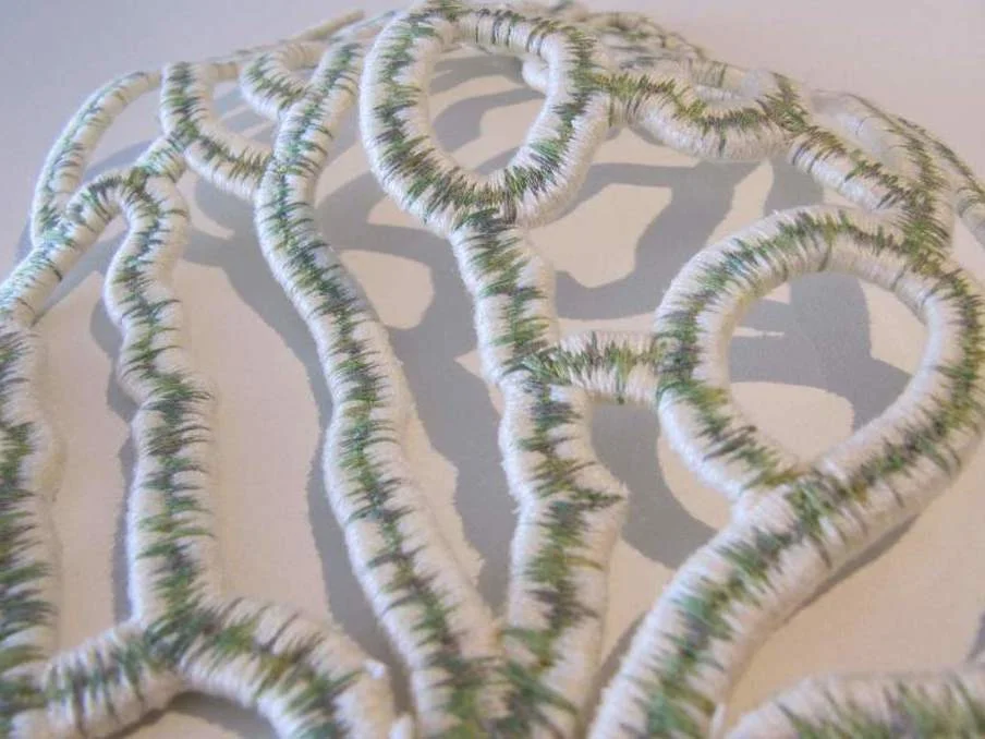 Imperfection, random constructions and irregular shapes: a creative playground for embroidery ! Combinations of thread types and structures within light and semi transparent designs. POLYMET and FILAMET, Gunold’s new thread types, fit perfectly to this trend, allowing designers to create their own thread and colour combination…